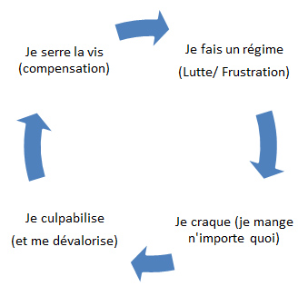 Il s’agit ici de toutes les règles alimentaires comme par exemple « manger comme un roi le matin, comme un prince le midi et comme un pauvre le soir » ou ne pas manger de pain, manger « équilibré », manger des aliments qui font maigrir… ne pas manger ceux qui font grossir, etc. Cet ensemble de règles va progressivement se substituer aux sensations de faim et d’envie. Si vous avez envie de manger des pâtes le soir, vos croyances vous obligeront à préférer une soupe. A force de ne plus écouter les signaux de votre corps, vous ne les entendrez plus et vous commencerez à manger avec votre tête. C’est ce qu’on appelle un trouble du comportement alimentaire.